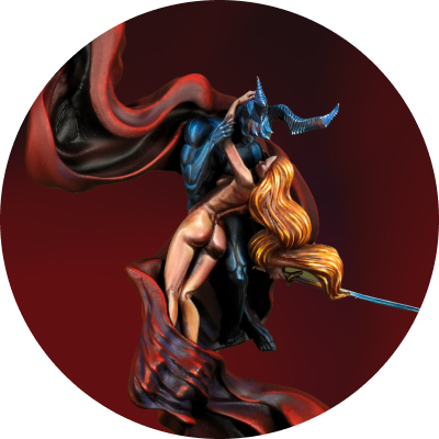 Our large freehand painting commissions are reserved for the most ambitious projects. These are full-scale murals - detailed battle scenes, heroic duels, or symbolic compositions - painted directly onto miniatures. Ideal for Warhammer 40k Imperial Knights, Stormraven wings, Warlord Titans, and other large vehicles, where broad surfaces invite storytelling through brushwork. Each piece is custom-designed, turning your model into a cinematic display of professional freehand artistry.
